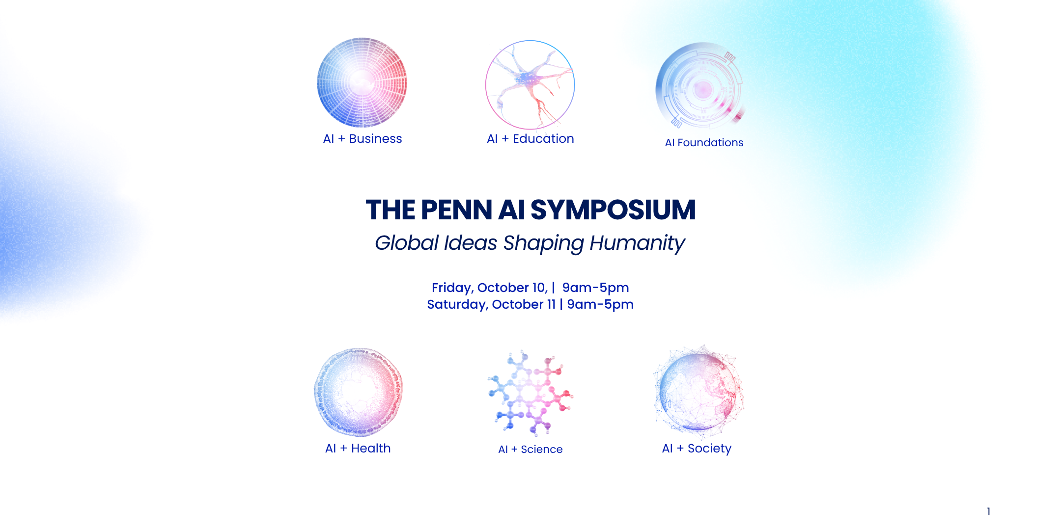 The symposium is open to faculty, students, and thought leaders, both internal and external to Penn. Penn AI is an interdisciplinary initiative, and speakers will address topics in Penn AI's core themes: AI Foundations, AI+Business, AI+Education, AI+Health, AI+Science, and AI+Society.